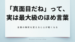 「真面目だね」って、実は最大級のほめ言葉 —— 言葉の解釈を変えると心が軽くなる 「真面目だね」と言われるたびに、なぜかモヤモヤしてしまう。そんな時期が、私にもありました。 心の中では、 「つまらない人って […]
